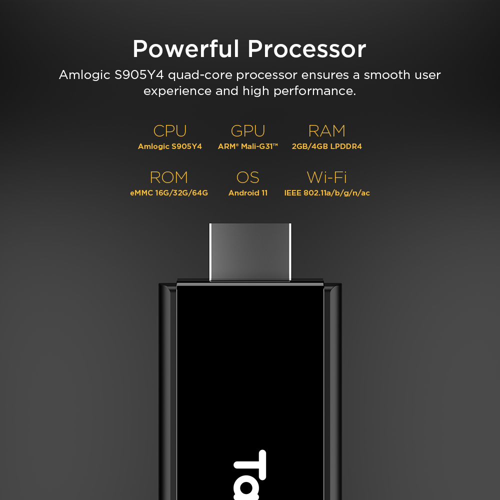 TX9 S905Y4 android TV stick with Quad Core Amlogic S905Y4 Cortex A35 Mali G31 MP2 GPU 2.4G 5G WiFi 2GB DDR4 16GB eMMC Bluetooth 5.0 android 11 OS TV stick.