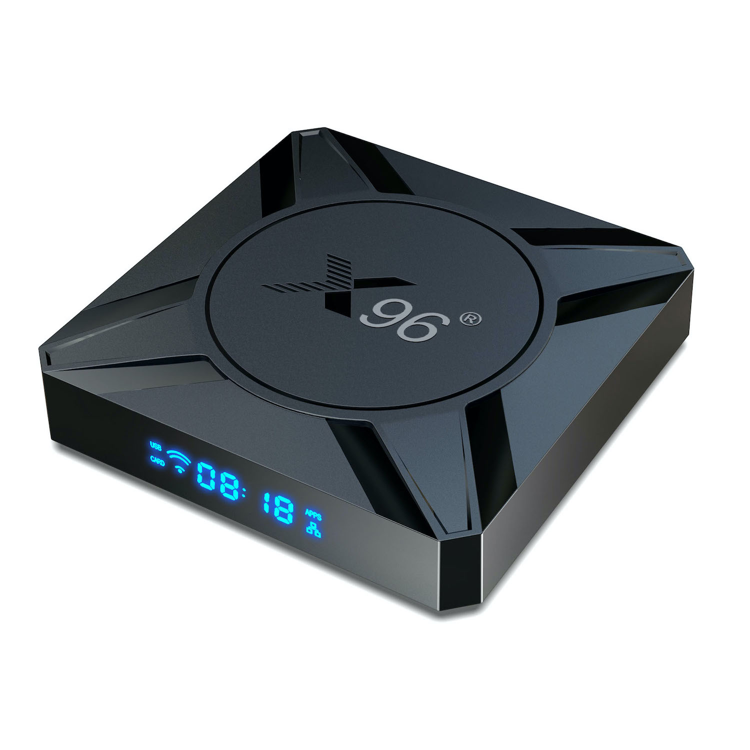 X96 M300 S905X5M Android TV box with Quad Core Amlogic S905X5M(S905A) CPU Mali G310 GPU 4GB DDR4 32GB 64GB EMMC 2.4G 5G dual band WiFi Bluetooth 5.X 1000M Ethernet AV1 8K 24fps HDR 10+ support android 14 OS.