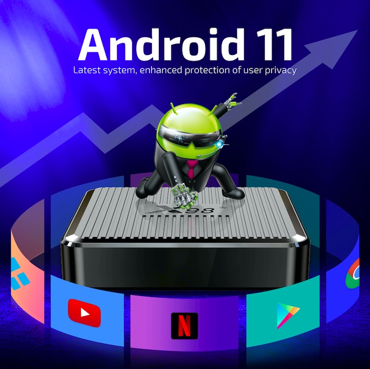 Cheap X98Q android 11 TV box with Amlogic S905W2 Quad Core Processor 1GB 2GB DDR3 8GB 16GB Flash 2.4G 5G dual band WiFi 802.11AC 100M Ethernet AV1 4K@60fps decoding android 11 OS TV box.
